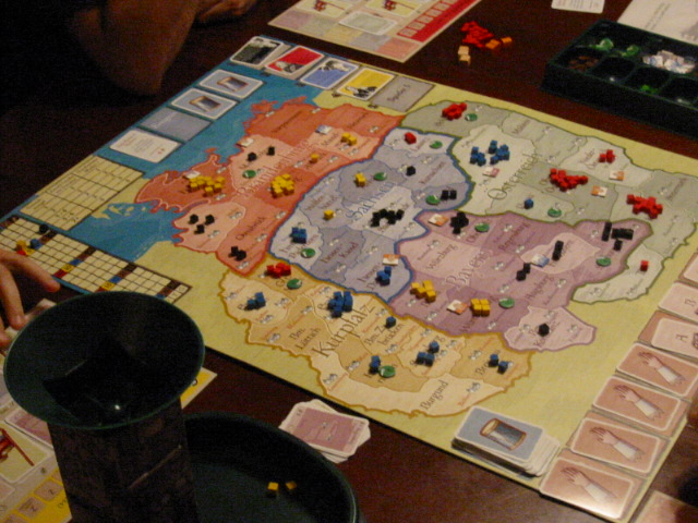 A close-up of the Wallenstein board. Note the dice tower, except it's